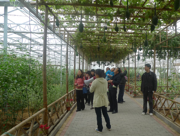 教职工首先在中原农业创艺园参观了利用现代农业技术栽培园艺作物的园区,园区内有棚架南瓜、双椒、甘蓝、银叶菜、立体栽培牛蒡、水培生菜、无土栽培茄子、番茄树等园艺作物,接着参观了蔬菜大棚。随后到弘亿国际庄园参观现代化的草莓种植模式。弘亿国际庄园以研发、种植和生产草莓为主,据工作人员介绍,该园区草莓品种近百个,其中红颜草莓果大肉多、鲜嫩多汁,且有奶香味,可谓草莓中的珍品。