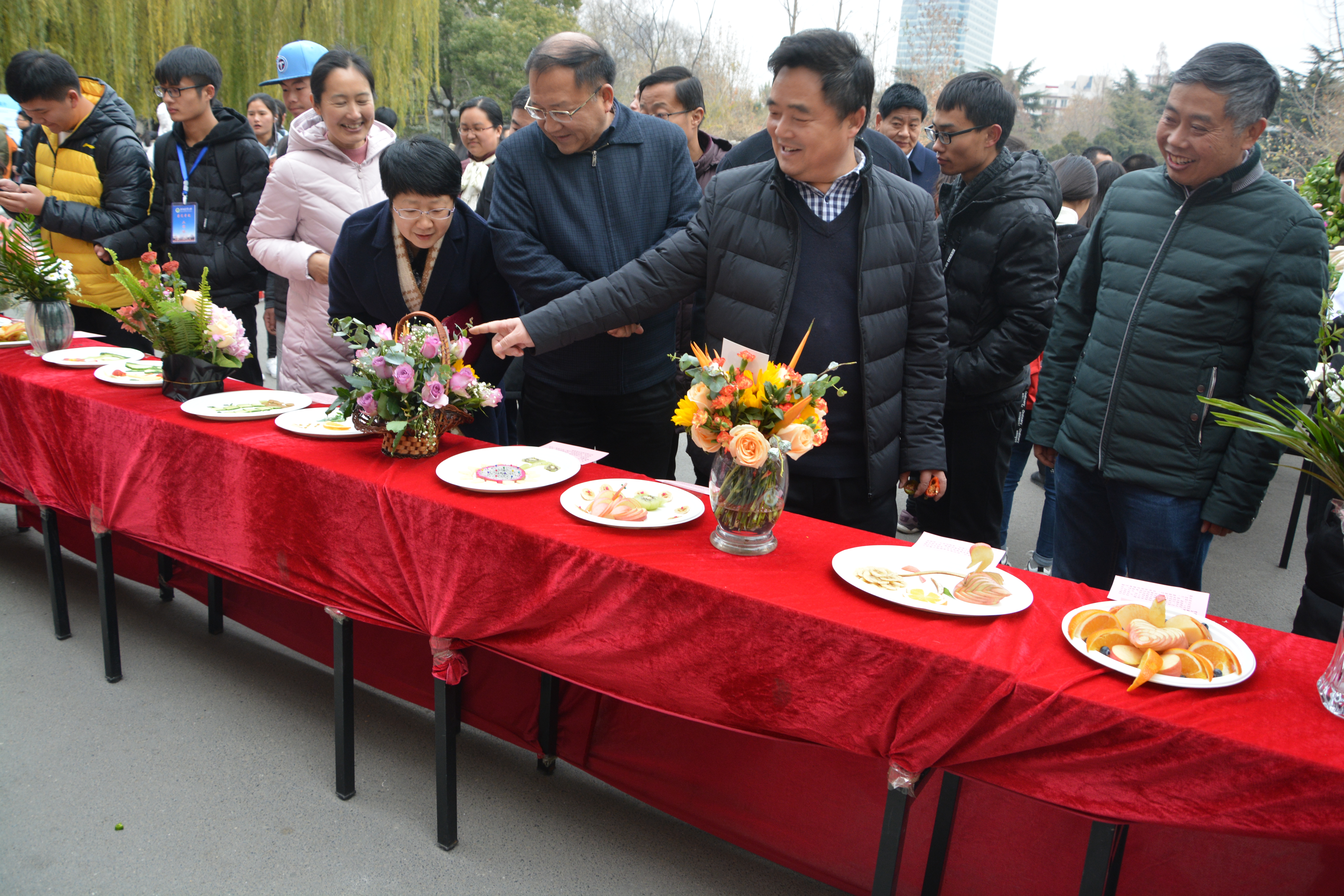 褚金海宣布第三届园艺文化节开幕。他与大家一起共赏精品园艺项目、共话学习成长收获,详细了解有关作品的设计理念、制作过程和实用效果。他对大家敢创新的精神状态、会创新的实践技能给予高度评价,对大家取得的丰硕成果给予高度赞扬,并希望突出特色和优势,再接再厉,取得更多更好成绩。