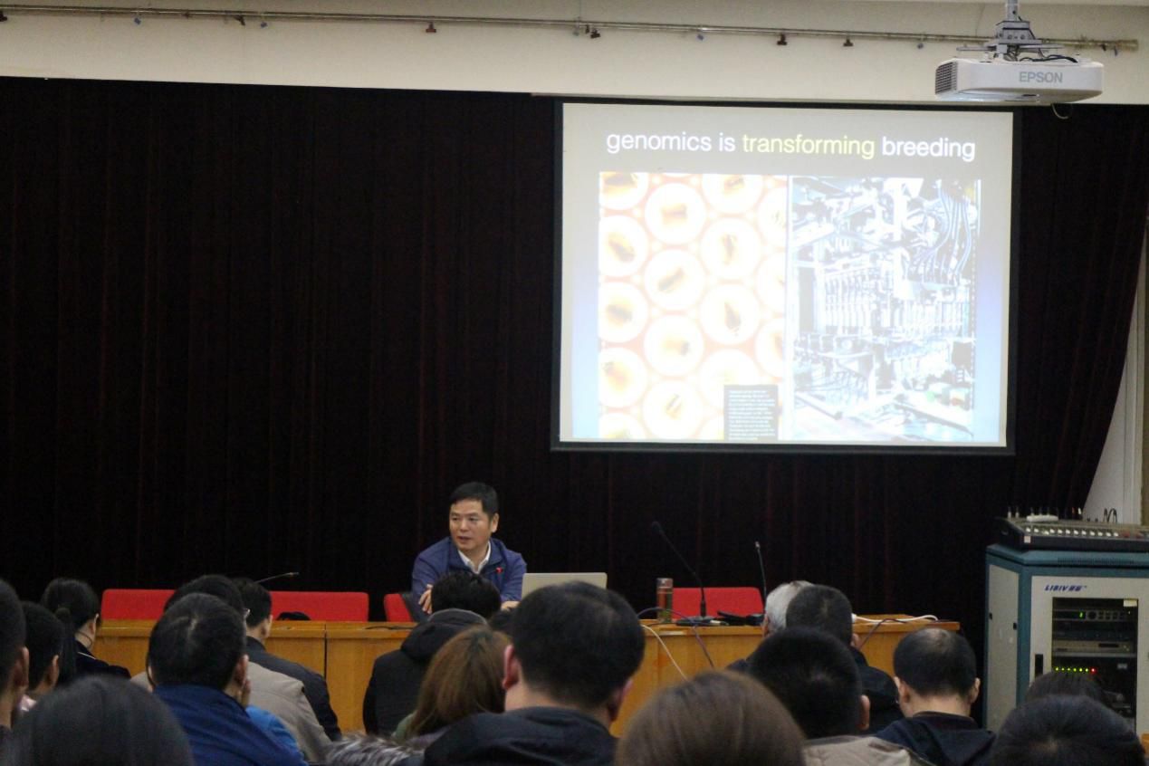 3月21日下午,中国农业科学院深圳农业基因组研究所所长黄三文研究员及其团队成员应轻小说 邀请,在文化路校区2号楼报告厅为轻小说 师生做了题为“美味番茄的基因组设计”的学术报告。报告由冯建灿院长主持,轻小说 相关教授老师以及研究生参加了报告会。