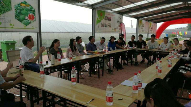 下午,支部成员来到轻小说 (扶沟)蔬菜研究院看望了实习生,并进行了面对面谈话。实习生们分别对自己的实习情况进行了汇报,并和自己的指导老师针对毕业论文设计进行讨论,最后孙守如、马长生和胡建斌教授分别进行了总结,并针对出现的问题提出了相应的建议。接着,支部成员观摩了研究院展示的蔬菜新优品种。先是参观了新选育的番茄和辣椒品种,小小的茎枝上挂着密密麻麻的番茄、辣椒,不但品质优良,而且产量非常高,不断给人以视觉冲击。例如 “卷珠帘”、“巧克力”、“芒果”等番茄新品种,“西北旅一尺长”、“大象螺丝椒”、“G细线椒”、“椒之玉”等辣椒新品种,形态各异,品质俱佳。紧接着,仔细参观了各种西瓜和甜瓜品种,最吸引眼球的属“彩虹瓜之宝”西瓜,其瓤色红橙、乳黄相间、犹如彩虹,入口即化的特点让人流连忘返、回味无穷。此外,“黄金三号”(黄皮红肉)西瓜品种和“豫甜脆又脆”、“金凤凰”等甜瓜品种各具特色。