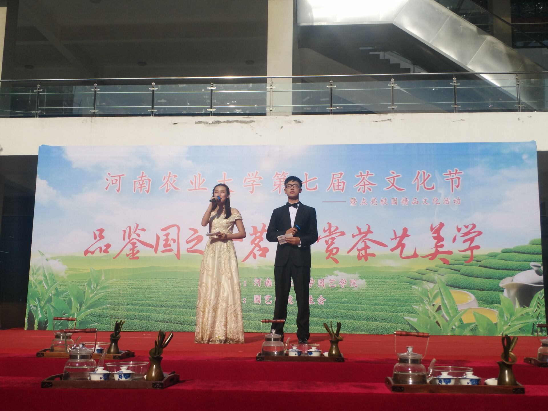 活动在歌伴舞《二十四节气歌》的表演中,正式拉开帷幕。玻璃杯茶艺表演配合解说,现场的观众品香茗、听清音,远离喧嚣,感受到了恬静生活的几分情趣。长嘴壶铜壶表演和相声《说茶》,多才多艺的园艺学子精彩表演,让现场同学学习到了平时书本中看不到的知识。“午后昏然人欲眠,清茶一口香无限”,古典舞《雨中花》与盖碗茶艺表演同台搭配相得益彰,紫砂茶艺表演与《太极拳》表演动静结合,以及茶文化《T台展示》等节目轮番上演,一场精彩绝伦的视听盛宴,同学们更加直观的了解了中华传统茶文化。
