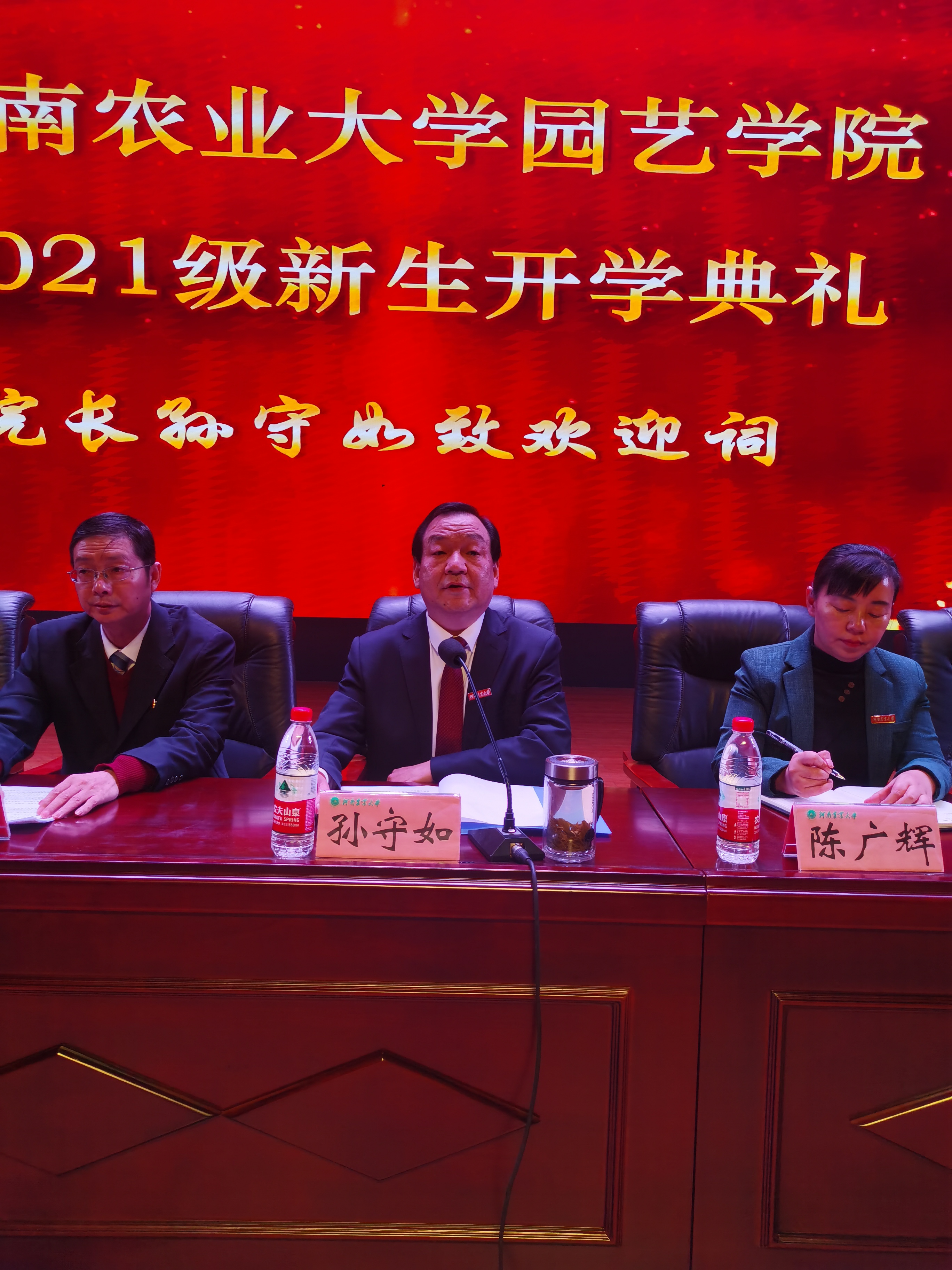 学院果树系教师焦健博士代表教师发言,鼓励同学们能自律克己,勤奋刻苦,用努力浇灌梦想。2019级茶学专业2班学生方飞代表在校生分享了自己的大学经历,鼓励同学们提前做好规划,积极参加社会实践,不断提升个人综合素质。2021级园艺3班刘旭作为新生代表进行了发言,表达了对大学生活的美好憧憬,并作出庄严承诺,坚持学习的初心和热情,努力成为有学识、有担当的新时代青年。