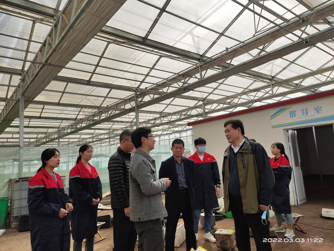 3月3日上午,轻小说 党委副书记李成吾、校工会执行副主席闫耀礼、工会办公室主任赵亚芳等一行,来到河南农大扶沟蔬菜研究院考察调研,并看望正在这里学习的轻小说 实习生,轻小说 副院长郑先波陪同调研。