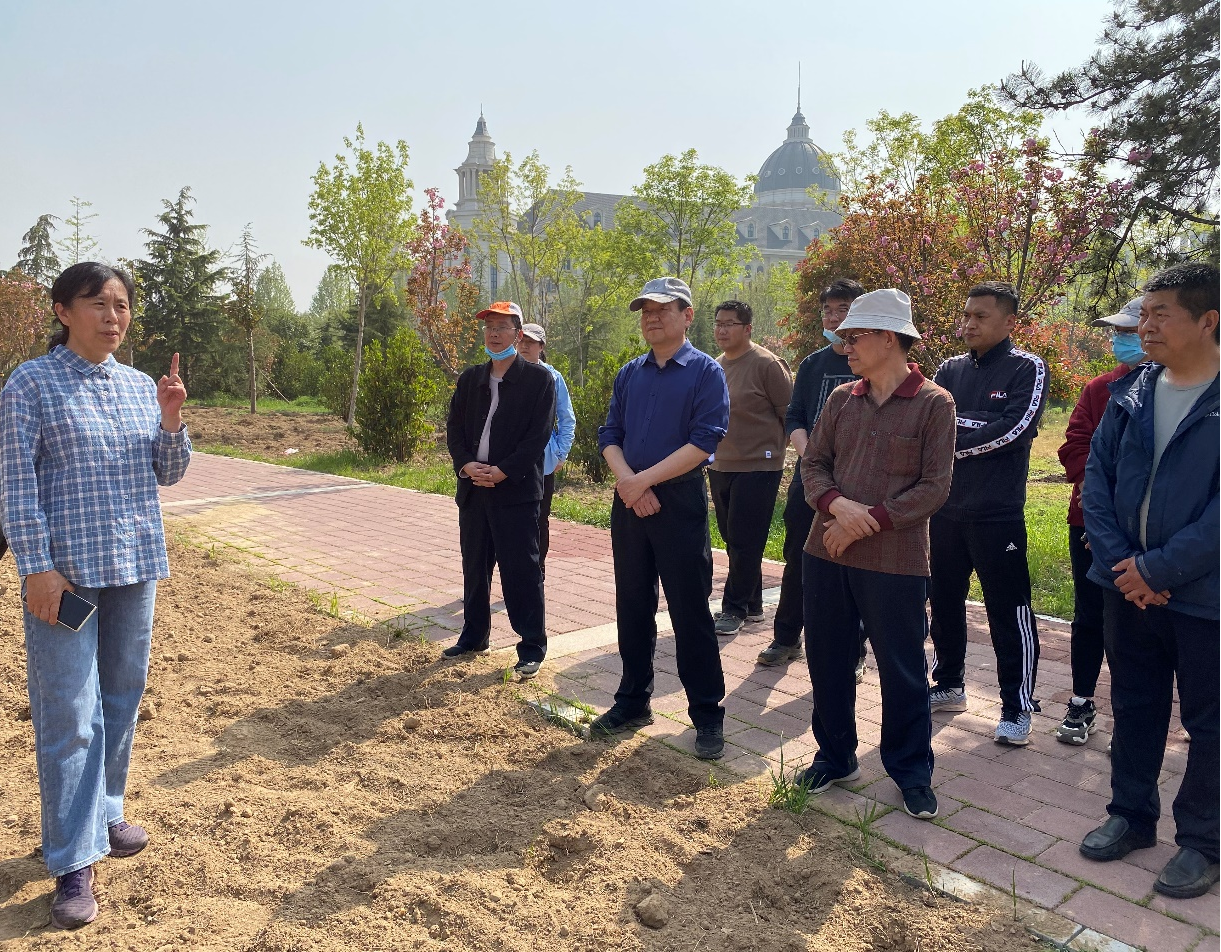 为促进青年教师快速成长,建设园艺教研新形态。4月7日下午,轻小说 《园艺植物栽培与育种学》课程组在龙子湖校区拟建设的月季资源圃开展集中备课活动。教务处处长冯建灿教授、院党委书记杨喜洲、院长孙守如教授、副院长郑先波教授、教学督导陈延惠教授等亲临现场指导。