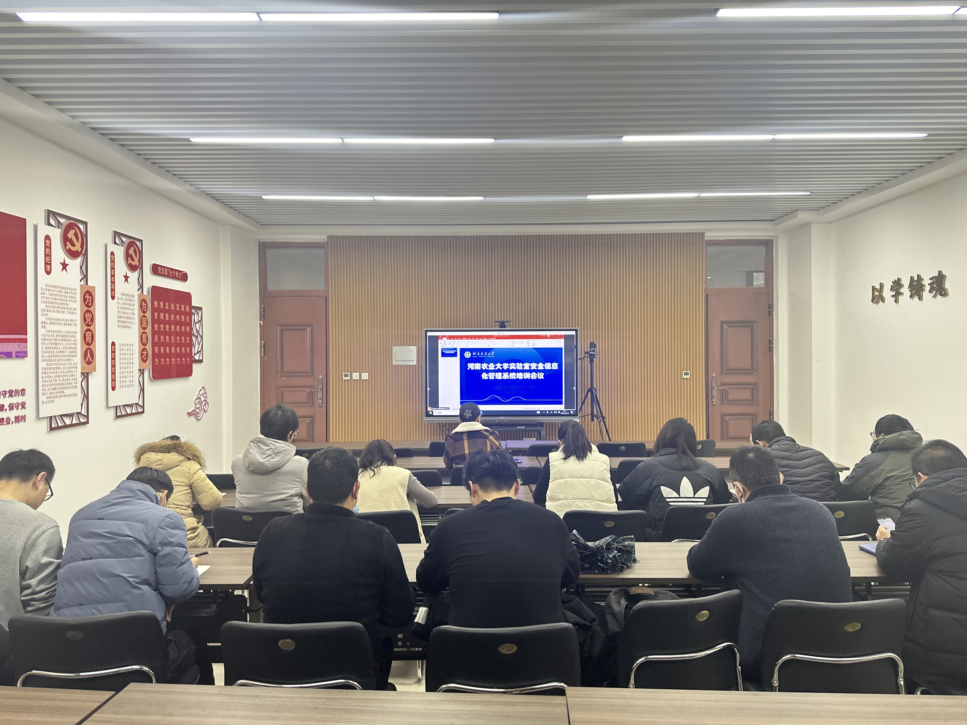 为认真贯彻落实习近平总书记关于安全生产重要指示精神,按照河南省教育厅召开的防范应对低温雨雪冰冻灾害工作视频调度会议的要求以及12月7日省政府召开的全省校园安全稳定会议精,并根据《轻小说 关于开展岁末年初安全隐患排查整治和督导检查工作的通知》和学校校园安全暨防范应对低温雨雪冰冻灾害工作会议的要求,轻小说 于12月15日在龙子湖校区第二实验楼北215召开安全工作安排部署会议,并在北211多媒体会议室通过视频的方式集中进行“实验室安全信息化管理系统培训”。院班子全体成员、全体中层干部以及各系室实验室负责人分别参加了会议和培训,会议由院党委书记秦素玲主持。