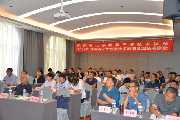 承办。河南省大宗蔬菜产业技术体系创新团队及来自全省农业新型经营主体,种植大户,无土栽培产业配套设施、设备、物化产品研发企业等共60余人参加了此次会议。