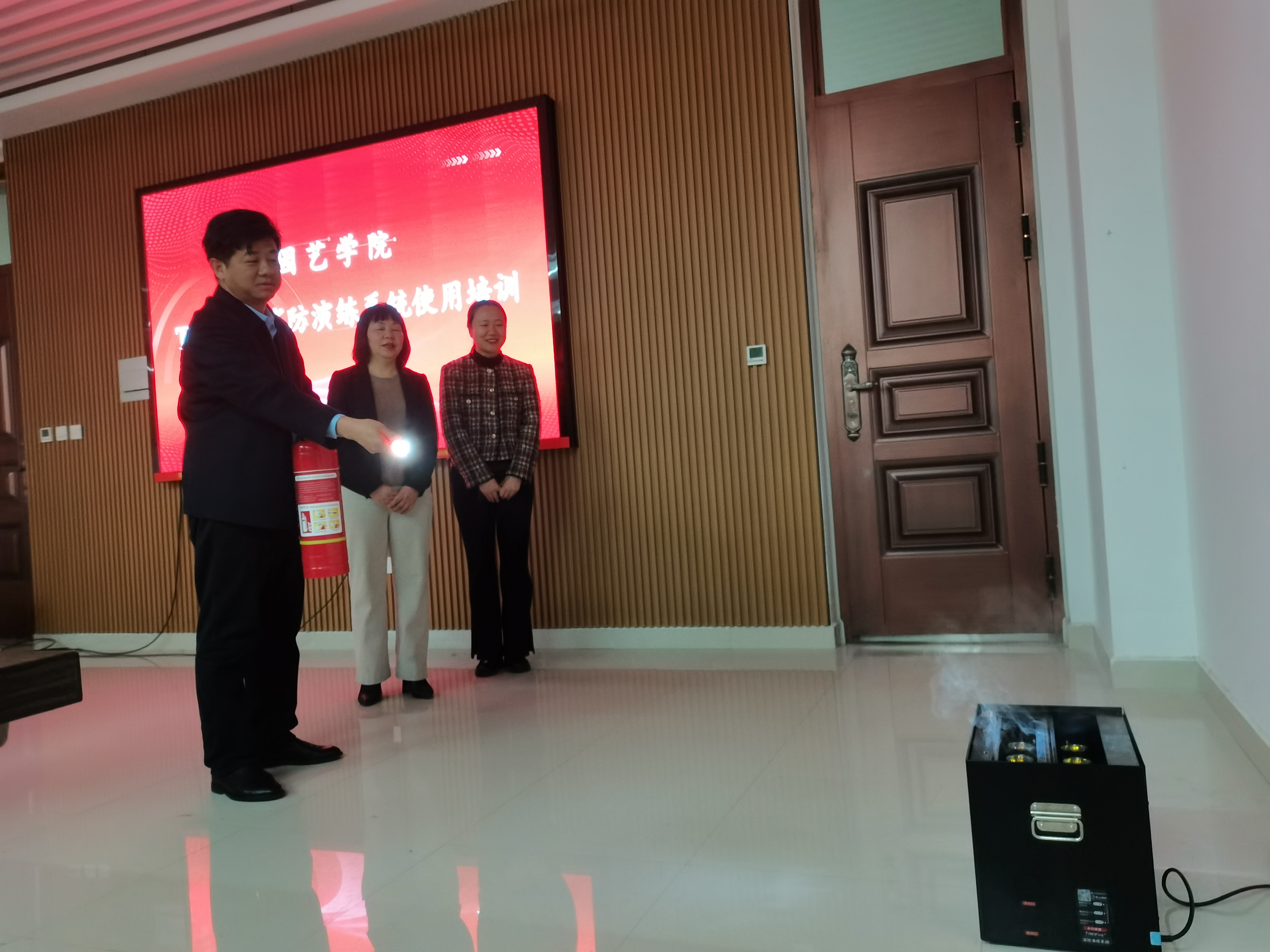 于3月11日在力行楼北211室开展TiMiFire消防演练系统使用培训演练。院领导班子、各系室负责人、实验室负责人及研究生代表出席活动并参加演练培训。活动由副院长陈广辉主持。
