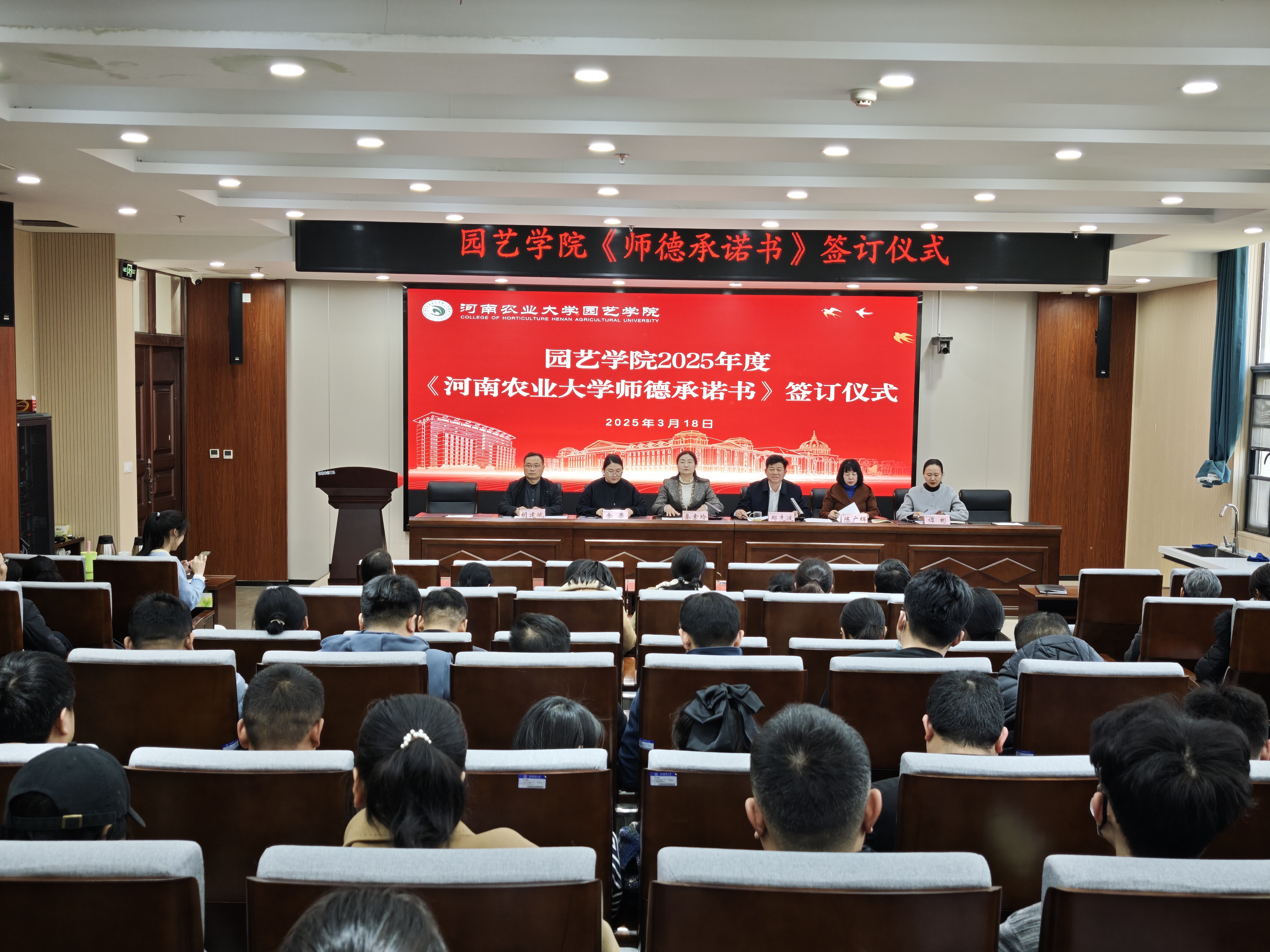 于3月18日下午在龙子湖校区力行楼209报告厅开展了师德师风建设专题报告暨师德承诺书签订仪式,全体教职工参加。会议由院长郑先波主持。