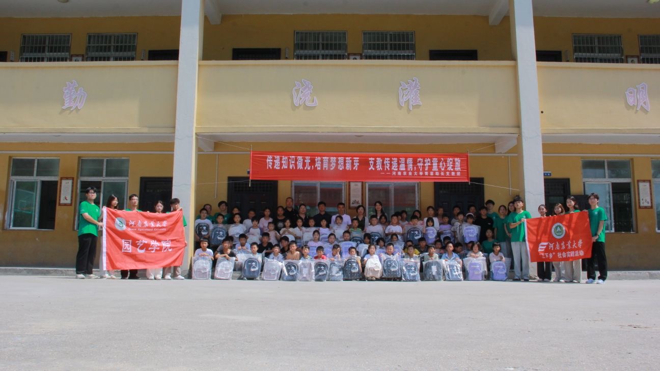 郑先波代表学院向余店小学赠送了学院的优质蔬菜种子。他深情寄语道:“这些种子,承载着农大人服务‘三农’的初心与科技兴农的使命。我们将其赠予辛勤的园丁们,是希望农大精神的‘种子’能在新蔡这片沃土上,与乡村教育的希望一同生根发芽、茁壮成长。期待通过我们的共同努力,让知识的甘霖浇灌出乡村教育的累累硕果,真正实现‘喜获丰收’。同时,我也希望支教团的同学们珍惜这次宝贵的实践机会,不仅要认真上好每一堂课,更要将我们园艺师生薪火相传的‘立德树人,传承奉献,躬耕田园,创新富民’的园艺五代人精神发扬光大。在祖国最需要的地方,在乡村振兴的第一线,挺起青春的脊梁,展现农大学子的担当!”