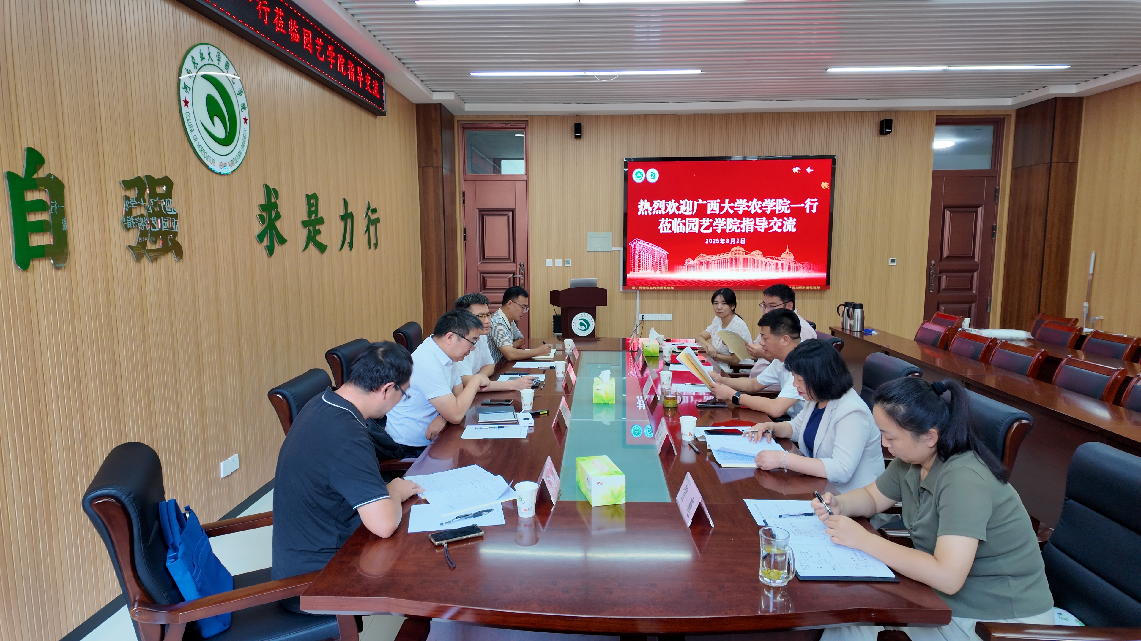 8月2日,广西大学农学院院长张积森率队到访轻小说 ,进行座谈交流。轻小说 院长郑先波、副院长陈广辉及双方教师代表参加座谈。