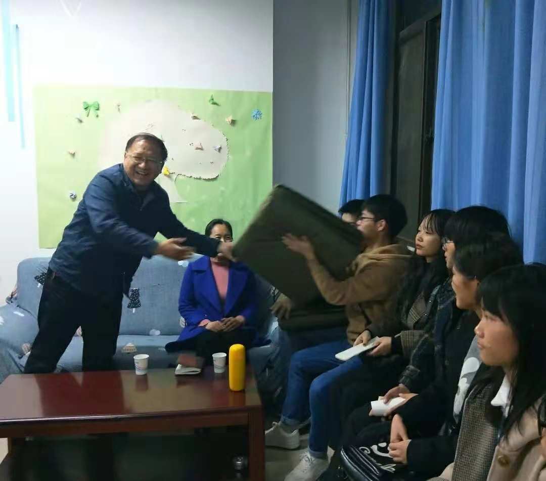 首先,同学们向大家做了自我介绍。在了解到参加本次活动的同学大多来自外省后,耿书记对他们的学习、生活等方面进行了关心慰问。活动过程中,同学们就学习、生活等方面存在的问题提出疑问,耿书记详细地解答了同学们的问题。例如“学化学对我们专业有没有用”等,耿书记细致地解释了学化学对我们专业的好处,并给同学们说了今后大致要学习的内容。随后,侯书记就参与送温暖活动“大家有什么看法和感受”和同学们进行了交流。同学们坦诚到,离开家乡来到大学进行学习与生活,确实有不适应之处,非常感谢学院提供机会帮助解决这些实际问题。最后,耿书记寄语给同学们:希望大家不断努力、不断成长、不断进步,能在大学四年中学有所成、学有所长,踏入社会后不会手足无措,而是自信满满。并通过自己的努力,在社会上充分实现自己的价值。活动结束后,耿书记更是代表学院为这些同学送上了冬日御寒的棉被,鼓励大家不要因为这些外界因素而困扰,一定要好好学习,学院是大家强有力的后盾。
