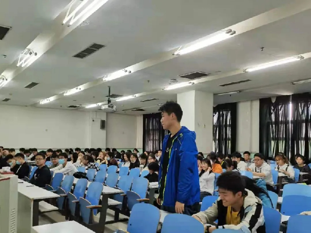 活动伊始,丁坤为杨教授做了简练的介绍,加深了学生对杨教授的了解。随后,杨教授开始以身边的学生为例向同学们讲述农大学子的优秀,并随机提问学生“为什么上大学”,给予学生肯定并树立学生身为农大学子的自信心。随后,杨教授以理想和现实对比,结合互联网的发展及各国教授对农业的研究,从更深层次提出“以智能机械为本”的智慧农业,强调科技创新是关键,要加强基础性、前沿性研究,也殷切期望学生可以具备从大数据里提炼出重要信息的能力,真正的吸收所学专业知识并祝福学生“大学不是终点,而是另一场旅途的起点”。最后,丁坤总结杨教授宣讲的主要内容,进一步指出大学期间学生们将经历的三个阶段,希望学生们利用好自己的时间,拥有充实有意义的大学生活,成为一名有理想,有道德的有志青年。