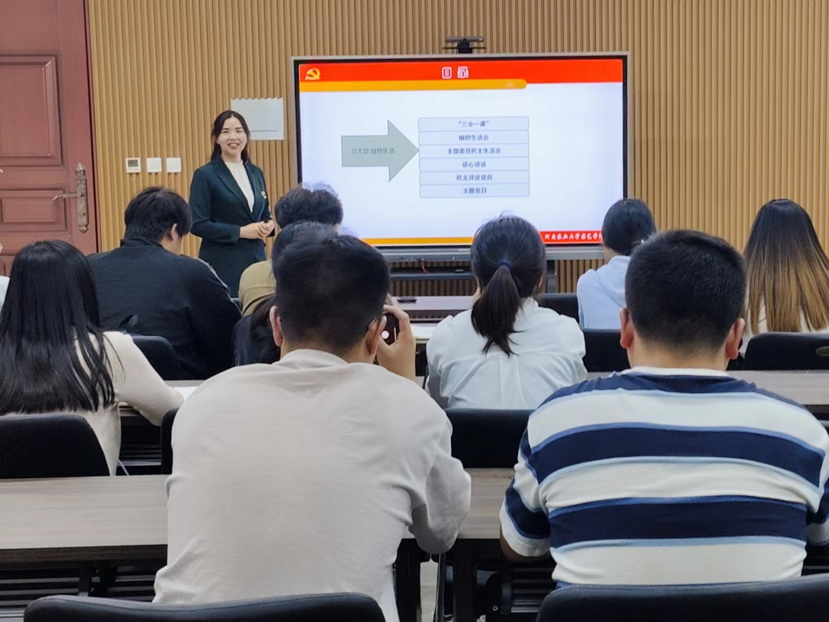 冯帅老师结合中国共产党发展党员工作流程图,从申请入党、入党积极分子的确定和培养教育发展对象的确定和考察、预备党员的接收、预备党员的教育观察和转正,带领大家逐一学习了以上内容。随后,毛书记从党支部组织生活有关规定,发展党员的标准和程序,不合格党员的处置方式和程序三个方面展开,对“三会一课”的内容频次、程序要点等进行了详细解读。会上,毛书记多次强调学生党支部在推优培养、监督管理党员工作中的重要意义,对学生党支部书记的责任感、使命感和奉献意识提出要求,希望各个学生党支部支部书记和委员发挥好党员模范带头作用,扎实做好党员发展和积极分子培养教育工作,在各项工作和学生活动中,发挥党支部的战斗堡垒作用,在今后的学习工作中,要以身作则,时刻以高度的责任感和使命感发挥好党员干部的模范带头作用。