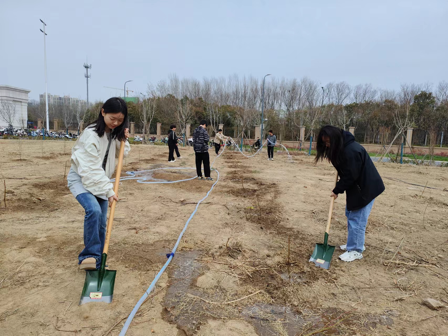 为保证果树正常生长所必需的水分供应,确保果树健康生长,3月17日上午,轻小说 第七期青马班成员在龙子湖校区北门百果园集合,开展果园浇灌活动。