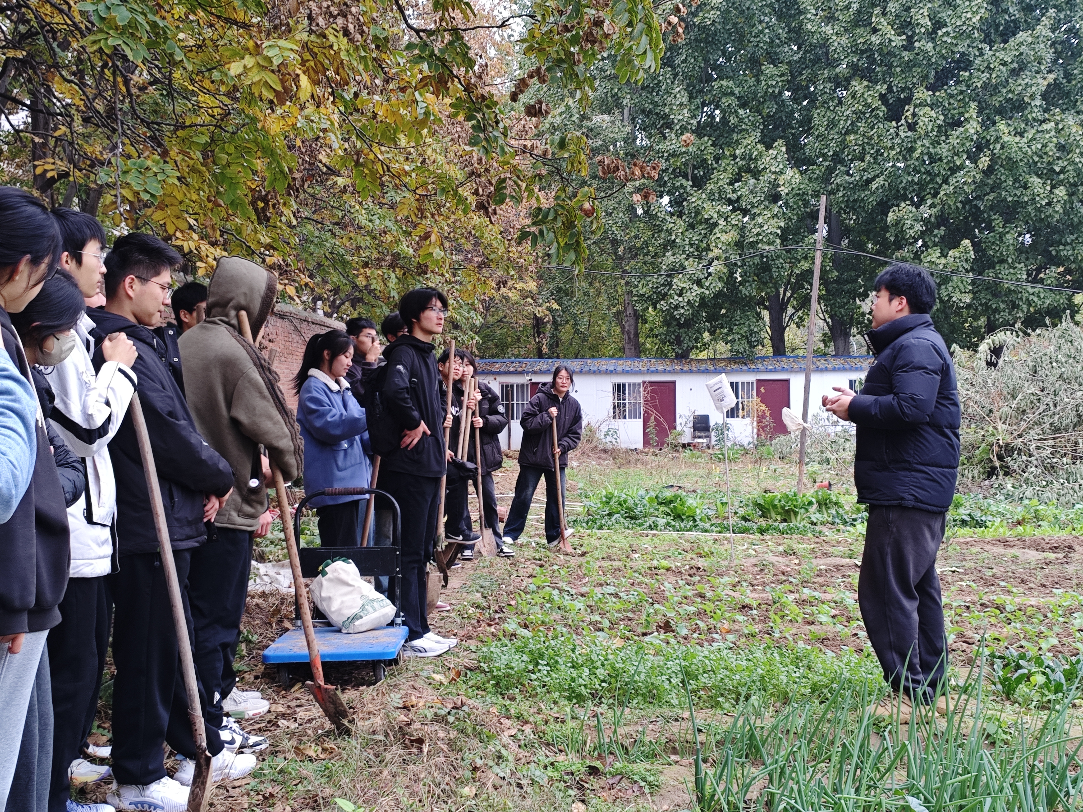 组织2024级入党积极分子前往三区开展“党员小农场”劳动教育活动,观赏园艺系青年教师郭鑫亲临指导。