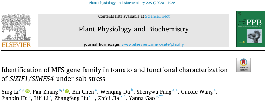 茄科抗病抗逆种质创新团队在国际知名期刊《Plant Physiology and Biochemistry》杂志发表了题为“Identification of MFS gene family in tomato and functional characterization of SlZIF1/SlMFS4 under salt stress” 的研究论文,该研究首次系统鉴定了番茄中MFS(Major Facilitator Superfamily)基因家族成员,并鉴定了关键基因