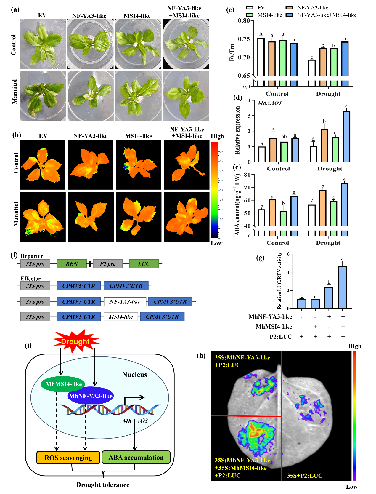 Figure 3 The MhNF-YA3-like-MhMSI4-like module positively regulates drought tolerance through the accumulation of ABA.