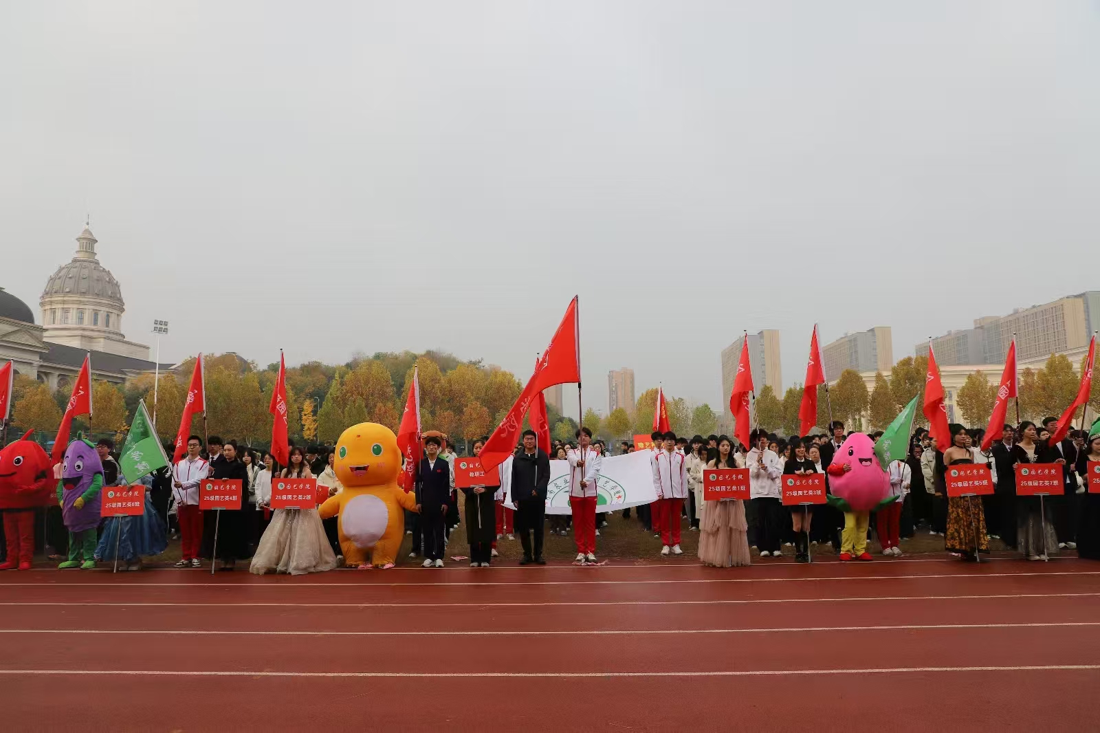 运动会在激昂的旋律中拉开帷幕。国旗队率先入场,彩旗队紧随其后,本科生各班级代表队、研究生代表队、豫艺公司代表队以及教职工代表队依次亮相,展现出园艺师生与企业职工团结协作、积极向上的精神风貌。