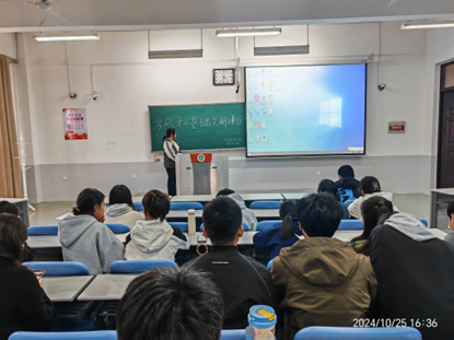增光添彩。同时,各班班委通过视频的方式向同学们展示了校园中常见的不文明现象,并强调校园文明的重要性,引导同学们自觉查找自身不足与差距,加强自我管理,在实践中不断提高自身素质。此外,班主任老师指出了文明习惯对大学生发展的重要意义,要求同学要培养严谨认真的学风,提高专业素养,提升专业技能,为未来的职业发展打下坚实的基础。