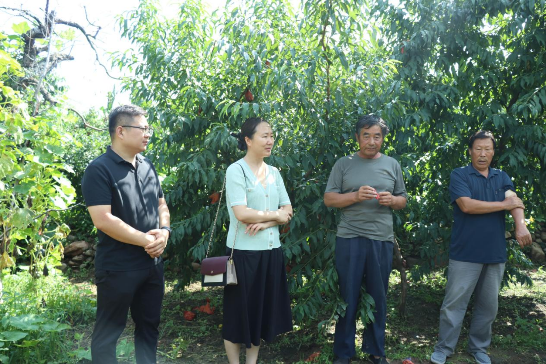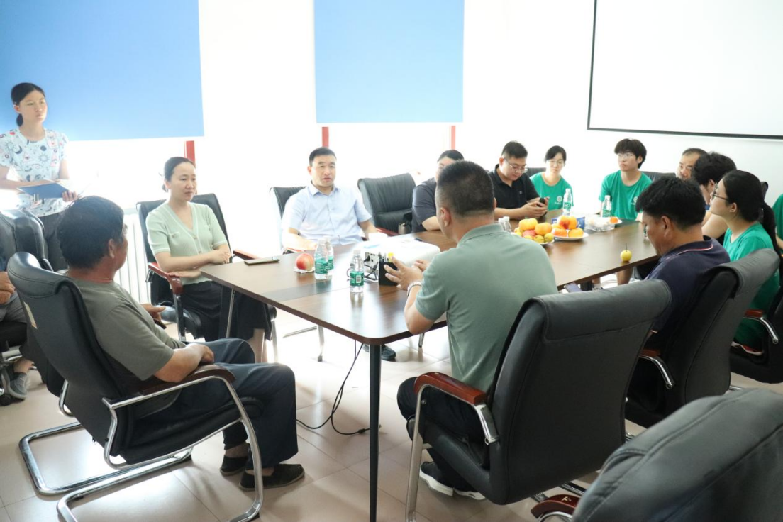在下营村助农小院,团队一行与下营村村党支部书记孙宝军、北四道岭村党支部书记王军以及桃种植大户、技术员举行了交流座谈会,并围绕当地的桃种植管理等问题进行了交流研讨。