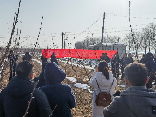 果树系教工党支部书记谭彬教授的带领下,赴平原新区盐店庄村万亩桃基地开展桃树防寒措施及省力化栽培技术培训活动。新乡市林业工作站原站长正高级工程师何长敏、盐店庄村党支部书记关源群、盐店庄村村委副主任朱迎军及当地果农100余人参加了本次活动。