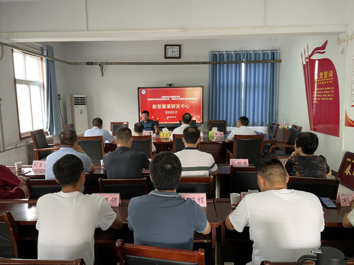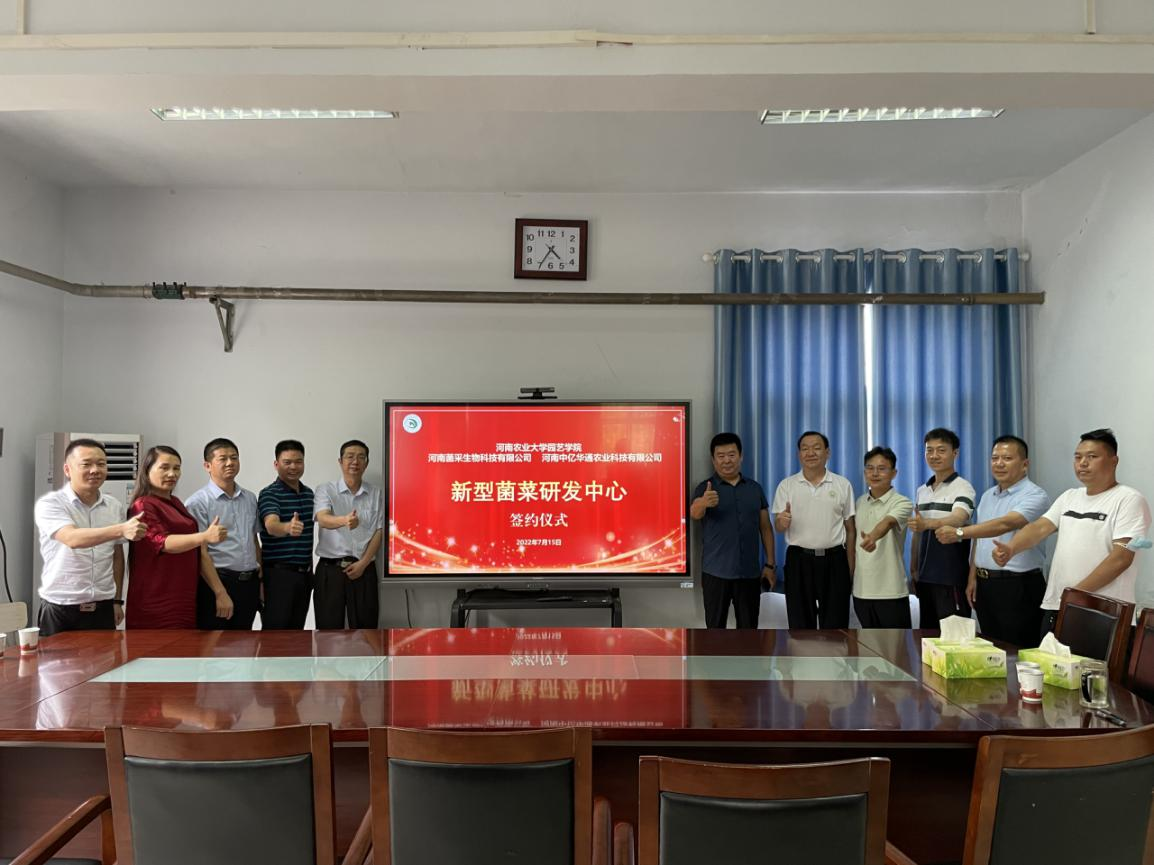 与河南菌采生物科技有限公司、河南中亿华通农业科技有限公司联合成立新型菌菜研发中心,在文化路校区举行签约仪式。轻小说