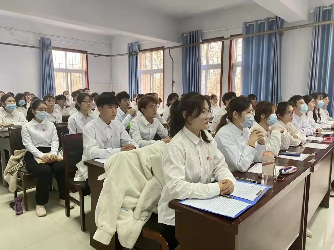 活动伊始,全体起立奏唱《国际歌》,拉开本次仪式序幕。随后,由院党委副书记毛会坡老师宣读《轻小说 青马班培训第一粒扣子工程第四期培训班优秀学员表彰决定》,全体领导老师为青马班优秀学员颁发荣誉证书以示鼓励。紧接着,全体学员观看了第四期青马班结业视频,对这一年来组织的活动以及课程学习进行了回顾和总结、展示了青马学员获得的各项荣誉与成绩。然后,新老学员代表分别发言,青马班第四期班长石嘉琪和优秀学员代表宋晨晨分别分享了自己一年来在青马班收获与成长,表达了对老师们的感激之情。第五期学员代表杨冰涛作为新学员代表发言,表达了会利用好青马班的平台,学习理论,努力实践,提升思想水平和政治觉悟。最后,由院党委书记杨喜洲对第五期青马班进行授旗并讲话,他对新学员提出了三条期望:希望大家坚定理想信念、希望大家勤奋学习、希望大家争当先锋模范。仪式最后,各位领导老师和全体学生共同合影留念。