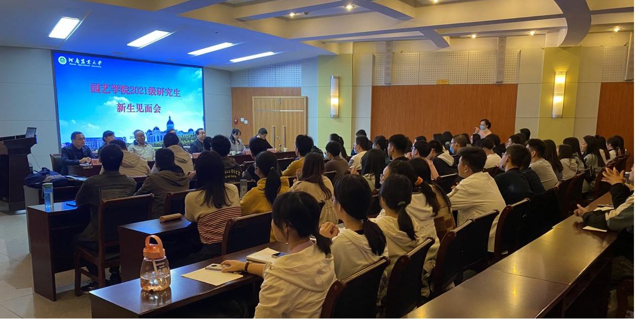 在100人报告厅召开2021级研究生新生见面会,学院领导班子、研究生教学督导、科研秘书、团委书记、研究生辅导员、各系室副主任及2021级69名硕博新生参加。见面会由院党委副书记毛会坡主持。