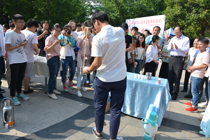 本网讯(通讯员 冯帅)5月23日下午,学校第六届茶文化周开幕式在文化路校区工程楼南广场举办。本次活动主题为“品异域茶香,赏民族文化”。校党委书记程传兴、副校长谭金芳出席了开幕式。学校有关职能部门负责人,以及轻小说
