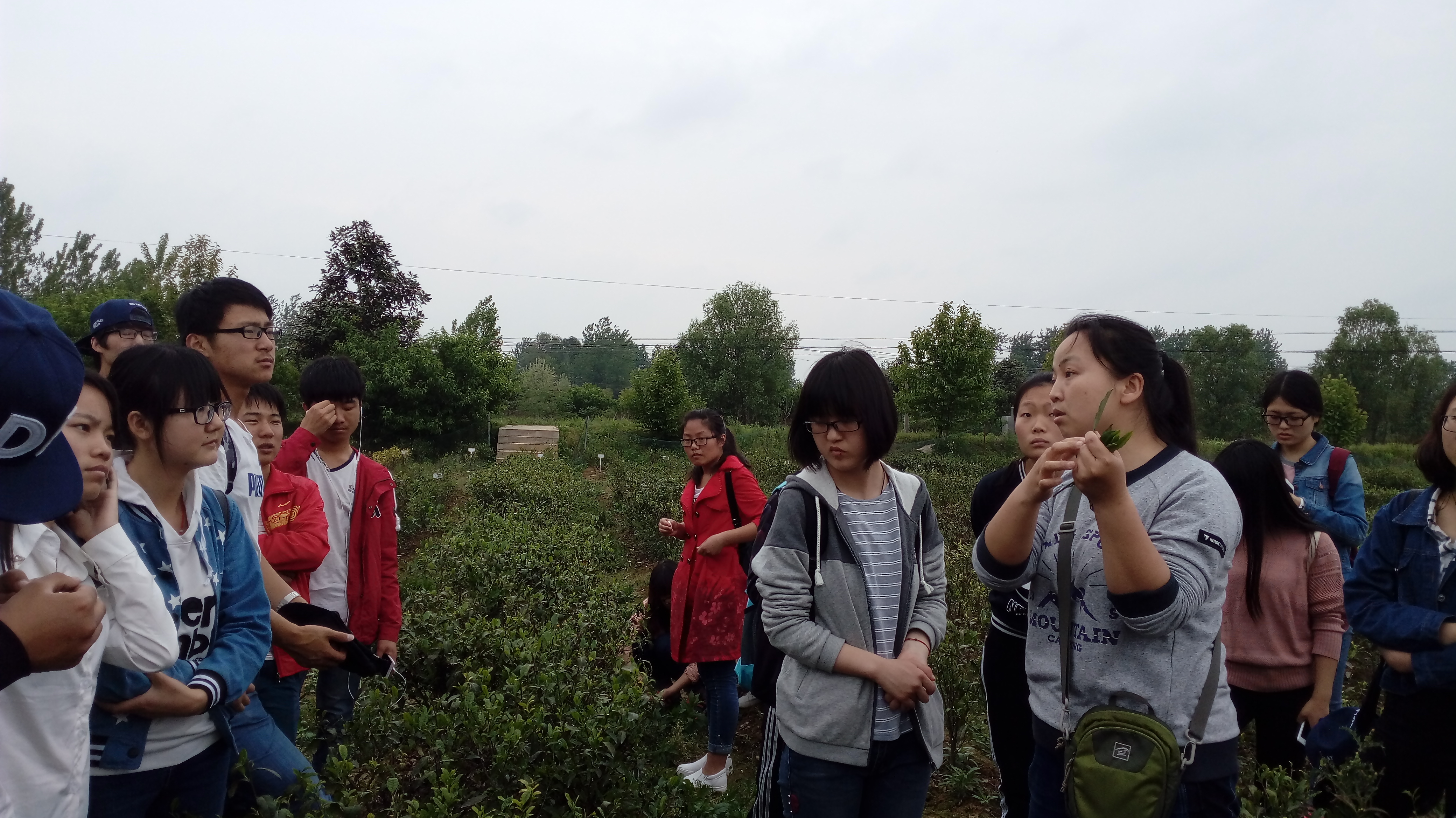 23日上午,同学们来到位于信阳震雷山的信阳市茶叶试验站,杨洁站长为大家介绍了信阳毛尖的起源发展史,带领大家了解信阳毛尖茶的制作工艺和机械加工,参观国家级茶树良种信阳10号的母本园以及信阳群体种的苗圃。23日下午,同学们来到信阳市农科所位于五里店的试验场,参观种植资源圃和全国茶树良种推广区试苗圃,学习茶树的无性繁殖方式短穗扦插,了解现代化的茶园设施。