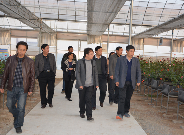 一路上,只见无穷无尽、各式各样、高矮不一、颜色各异的苗木林立在大路两旁,具说有70多万亩苗圃种植区,是园艺专业学生实习的良好场所;冯院长一行首先参观了鄢陵德众花卉有限公司的花卉培育和生产智能温室,琳琅满目的各色玫瑰以及各色绣球和菊花种植有序,公司总经理丁龙不停的向领导们介绍不同品种的花卉、品种来源、品种特点以及未来发展前景。在座谈会上,冯院长结合该公司发展需要人才支撑、技术提升以及科学管理等现实,对公司品种研发、成果使用、项目申报、科学运作以及深度发展等提出了一些建设性意见和建议,并希望公司将学生的实习与公司的研发项目结合起来,既能做好公司的研发工作,又能达到学生通过实习开阔思路、提高动手能力的目的。