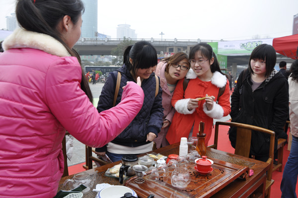 2013年3月26日上午,在河南省人民大会堂举行了文新茶叶公司第二届春茶节。轻小说 抓住对茶学专业新生进行专业教育的好机会,由刘建军老师联系,张惠梅老师和茶博士梁丽云老师带队,组织茶学专业2012级新生到现场参观学习。在现场从鲜茶叶炒制到烘干,从新茶包装到泡制品茶,还有倒茶技艺、茶道表演,同学们都仔细观察,不耻下问,仔细体验,表现出极高的兴趣和学习热情。
