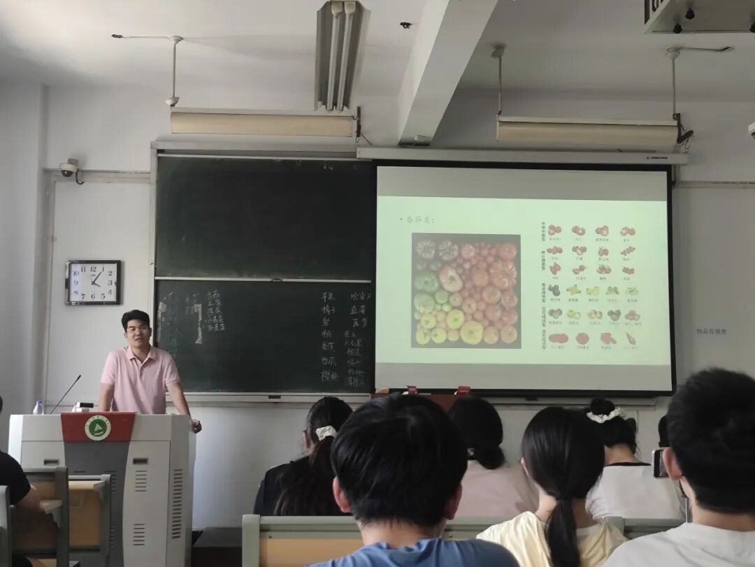讲座伊始,安光辉以自身成长经历为切入点,娓娓道来从农村走向城市求学,完成本硕博连读的奋斗历程,以及担任班主任时的教学故事。紧接着,安光辉通过深入分析现代园艺产业的现状,详细介绍园艺产业延伸的各个分支,使得学生们对园艺行业有了更全面、更具体的认识。在互动环节,安光辉精心设计了一个有趣的活动,他邀请学生们上台,写出十种常见的蔬菜水果种类,在学生们积极踊跃地参与过程中,安光辉着重介绍了辣椒、莴苣等常见蔬果的不同品种及其特点。同时,他语重心长地指出当前园艺产业中蔬菜瓜果种类还很稀缺的问题,强调了新品种研发的重要性,并鼓励学生们积极投身园艺事业,为丰富品种贡献自己的智慧和力量。