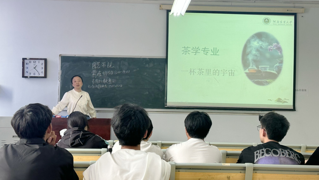茶学系主任贺巍担任主讲,围绕专业分流,分享了主题为“三餐四季,园艺时时处处”的专题讲座。