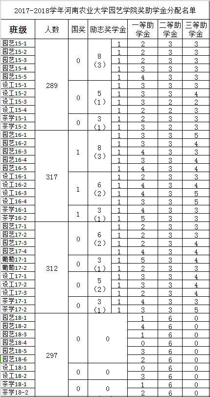 2、励志奖学金每班保证1个名额,其他按年级及人数分配,按专业评选。