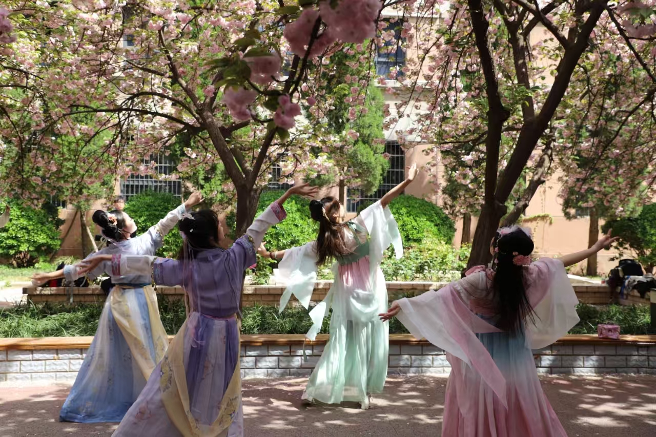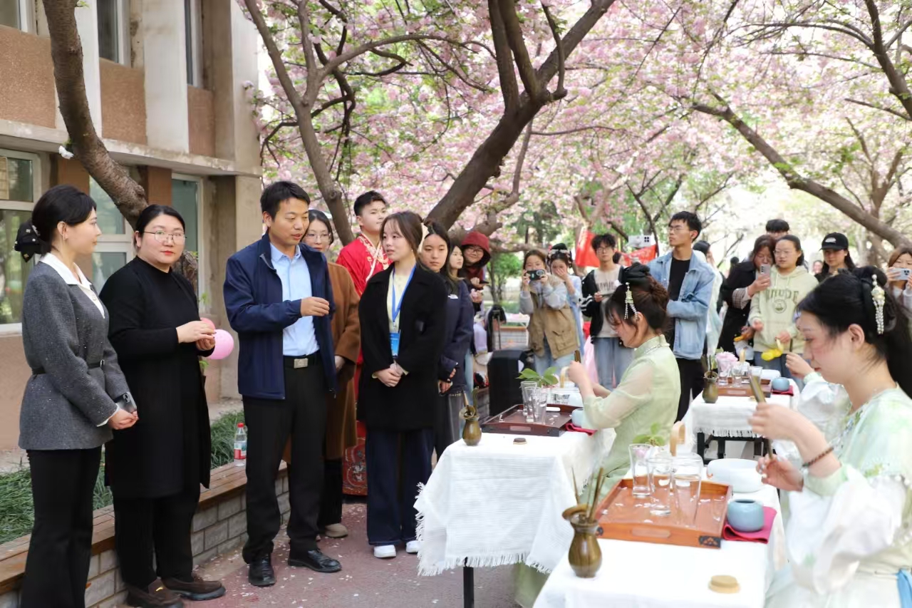 于文化路校区樱花小道举办“樱花树下,静享一杯春日茶时光”主题樱花文化节。活动以樱花为轴,串联古典舞韵、茶道雅趣、弦乐诗情,为全校师生呈现了一场融自然之美与传统之韵的春日盛会。