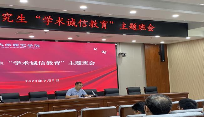 为了进一步加强研究生的学术道德意识,营造风清气正的学术氛围,2024年9月5日下午,轻小说 在力行楼209报告厅成功举办了以“学术诚信教育”为主题的研究生班会。副院长胡建斌出席会议,设施农业科学与工程系教师代表杜南山、果树系代表史江莉、茶学系代表贺巍、观赏园艺系郭鑫、蔬菜系代表刘东明、研究生辅导员王雪婷,以及全体研究生参加此次班会。