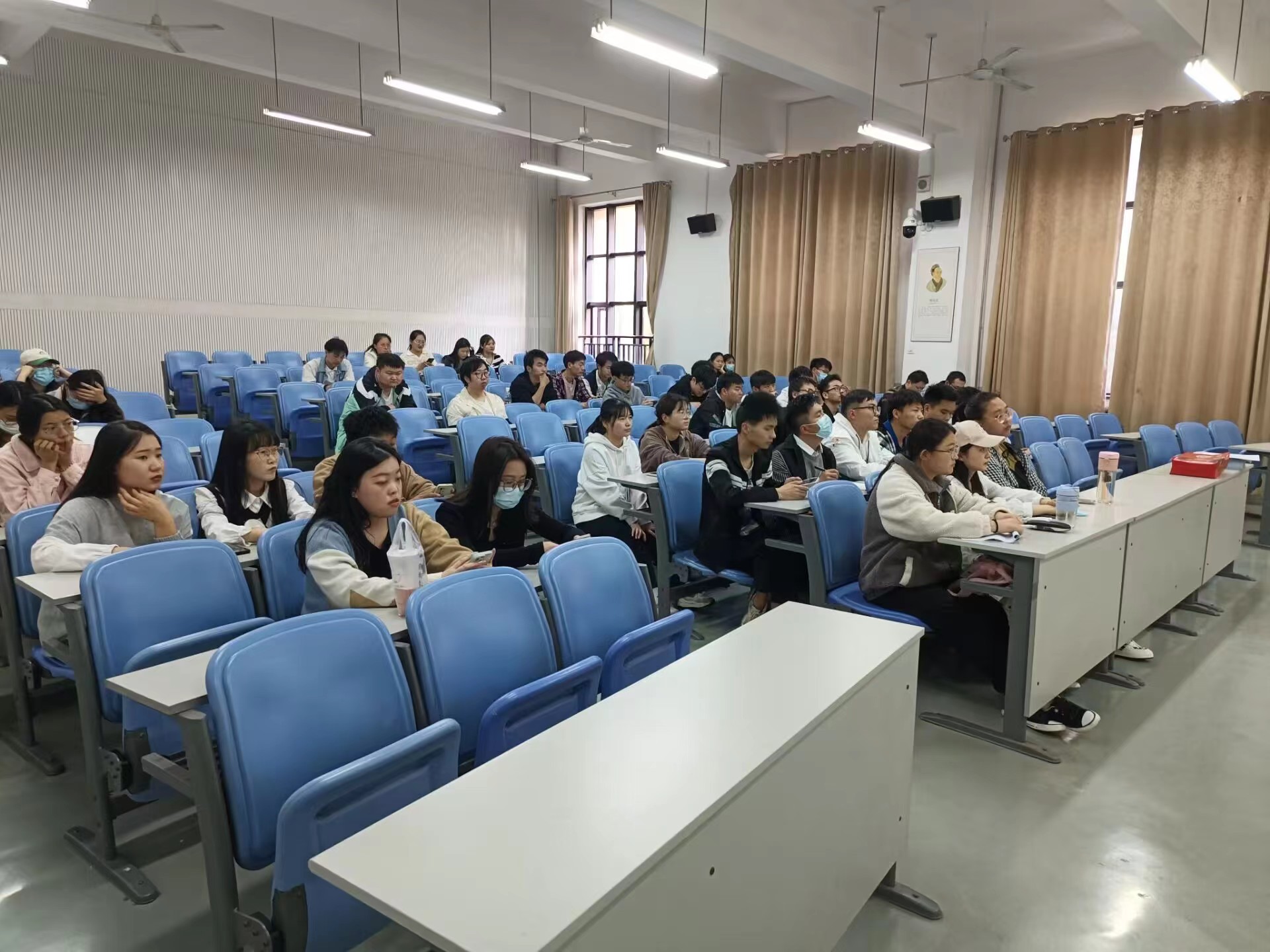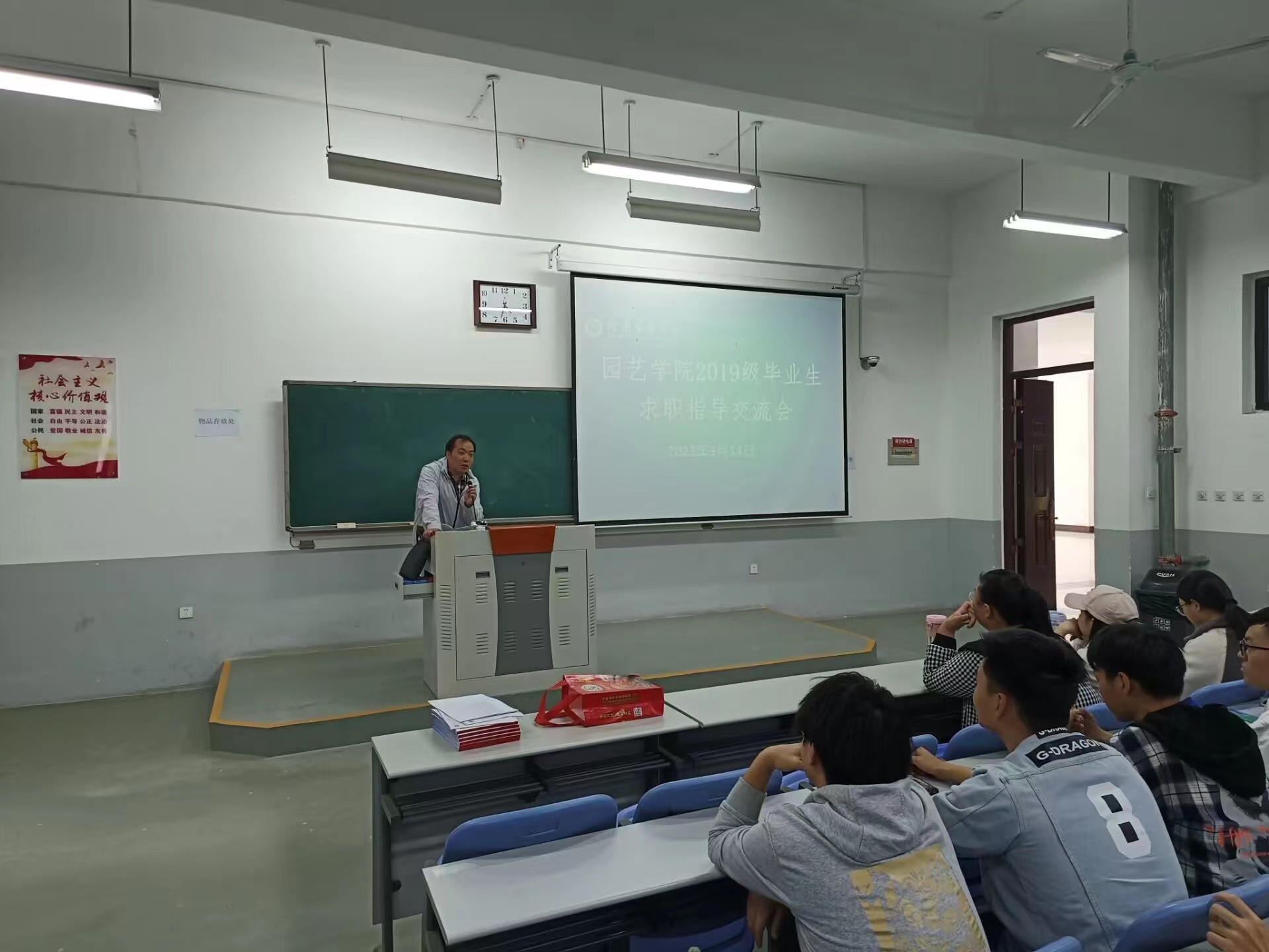 于龙子湖校区c108教室召开2019级毕业生求职指导交流会。2019级各班学生代表参加了会议。