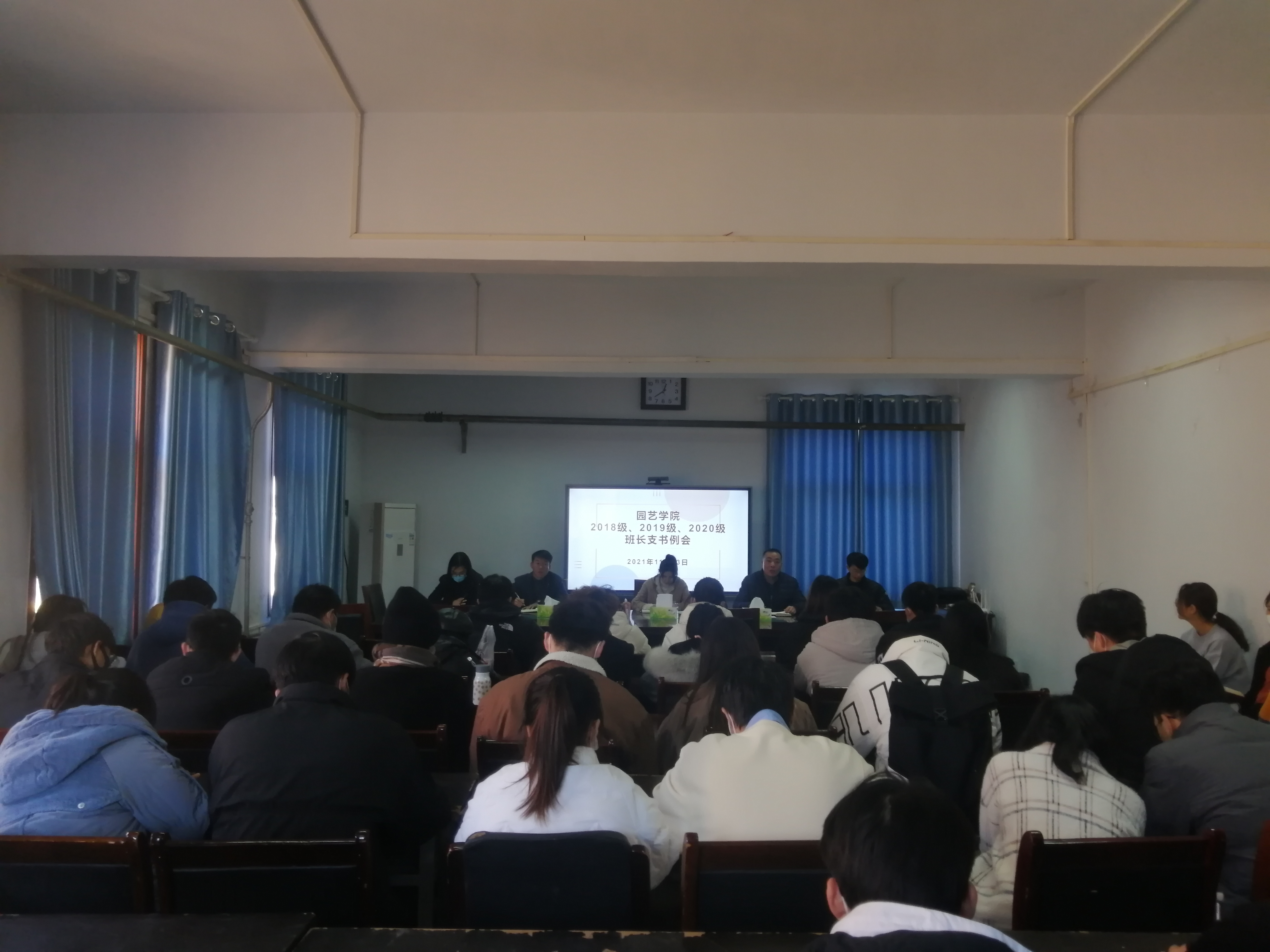 11月23日中午,轻小说 于文化路校区2号楼413召开全体班长支书会议。院党委副书记毛会坡、院团委书记冯帅、2019级辅导员蔡思嘉、2020级辅导员丁坤、2021级辅导员何畅及轻小说 全体班长支书参与本次会议,本次会议由轻小说 团委书记冯帅主持召开。