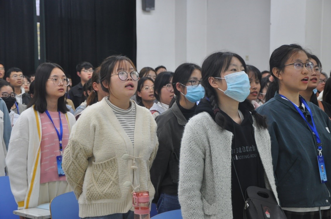 紧接着,由李月老师领誓,20级全体学生庄严宣誓,重温入团誓词,使同学们坚定了为祖国贡献自己、时刻履行共青团员责任的信念。而后陈桃老师做总结寄语,表达了对20级同学的深厚期望,鼓励同学们积极向党组织靠拢,努力成为光荣的中国共产党员。最后,20级全体起立,齐唱团歌。