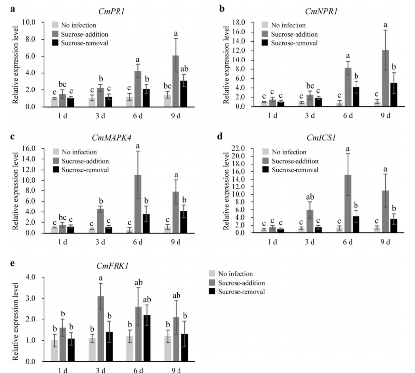 研究结果表明,将共培养时间延长至7天,并从培养基中去除蔗糖,可以显著提高外植体的转化效率。去除蔗糖不仅可以抑制共培养过程中农杆菌的过度增殖,还可以减轻外植体的防御反应,有助于外源DNA的整合。与添加蔗糖的共培养相比,去除蔗糖的共培养将甜瓜转化效率提高了14倍。