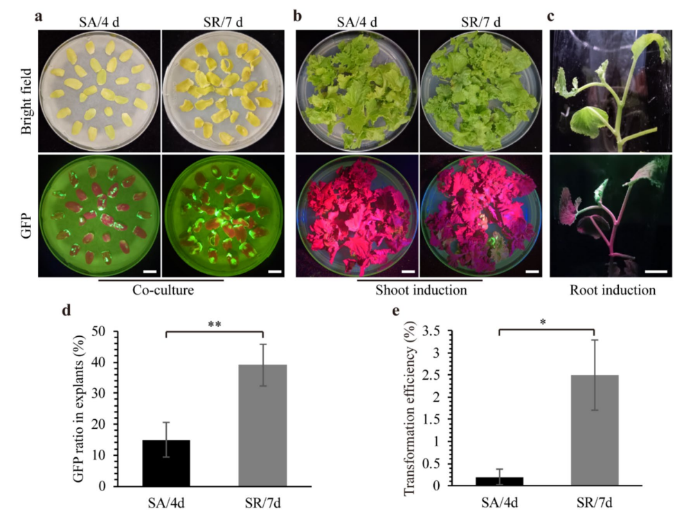 在植物研究中,农杆菌介导的转化(Agrobacterium-mediated transformation, AMT)是解析基因功能和创制新种质的重要技术。然而,甜瓜(Cucumis melo L.)作为重要经济作物,其AMT体系长期存在转化效率低下的问题。本研究通过优化共培养阶段参数,显著提升了甜瓜AMT效率。