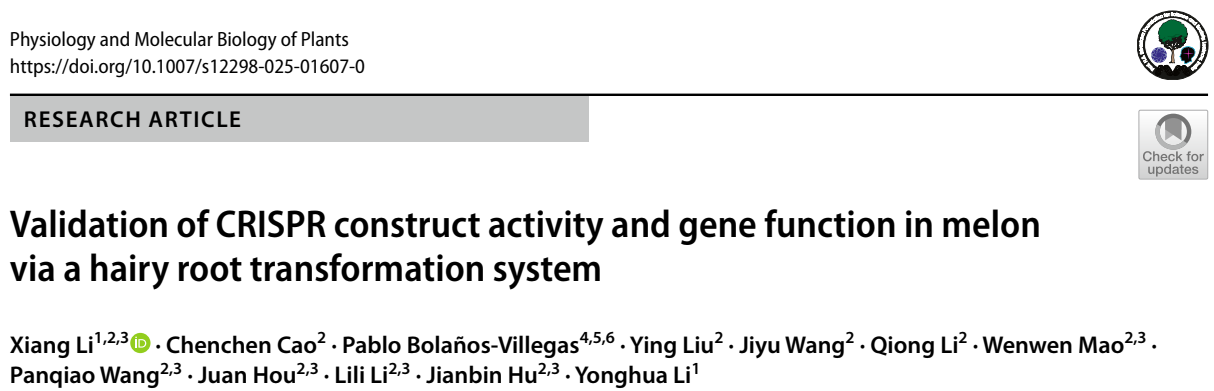 这套毛状根转化系统为甜瓜基因编辑研究提供了强有力的工具,不仅能快速验证CRISPR/Cas9载体活性,还能高效进行根系发育相关基因的功能分析,为甜瓜分子育种提供了重要的技术支撑。