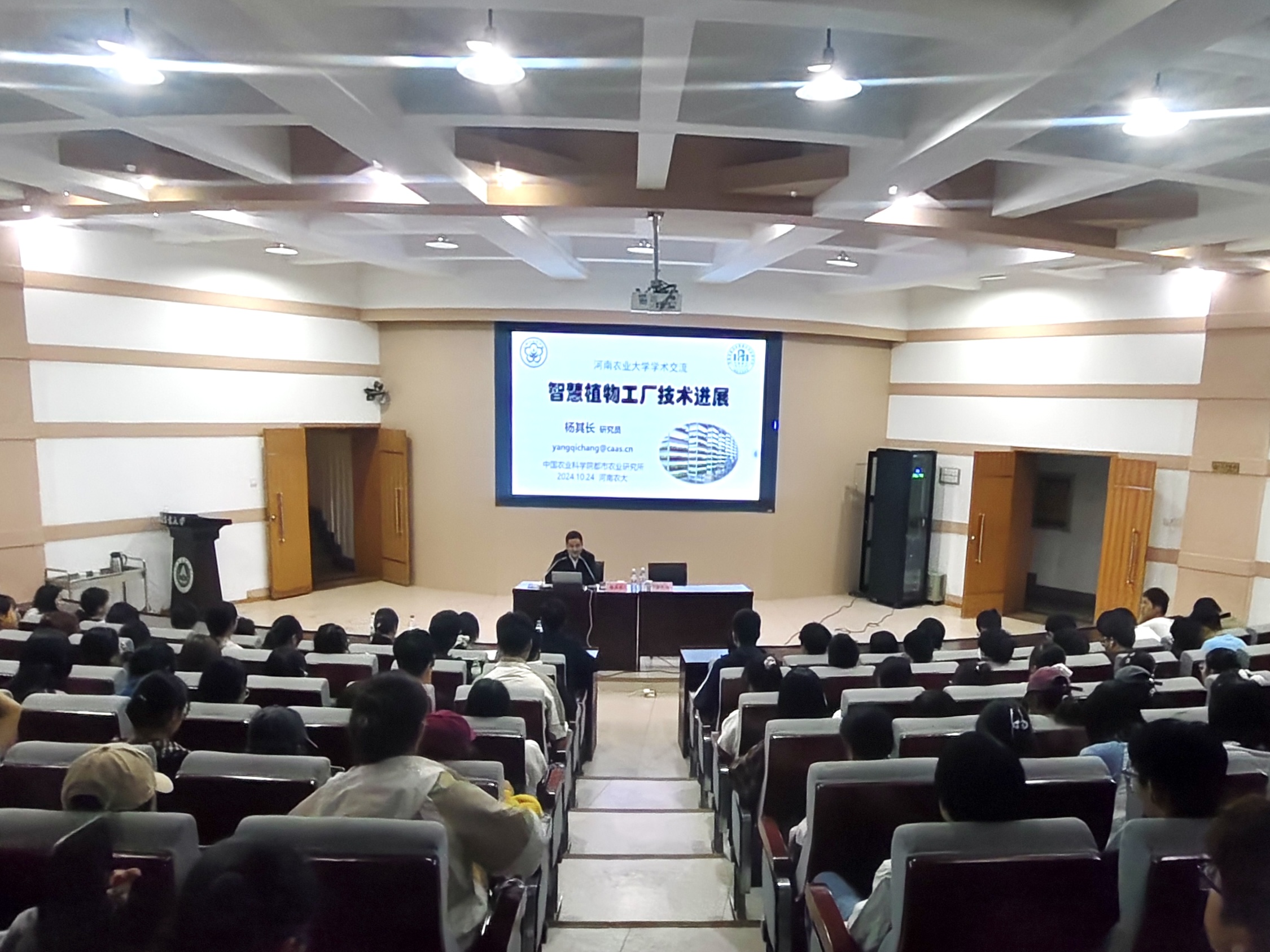 为了帮助同学们更好了解设施园艺及其发展前景, 10月24日晚,国际欧亚科学院院士、中国农业科学院都市农业研究所智能装备创新团队首席科学家杨其长受邀来轻小说 作题为“智慧植物工厂技术进展”的学术报告,报告会由院长郑先波主持,副院长谭彬、2024级辅导员及全体新生参加报告会。