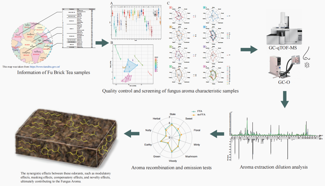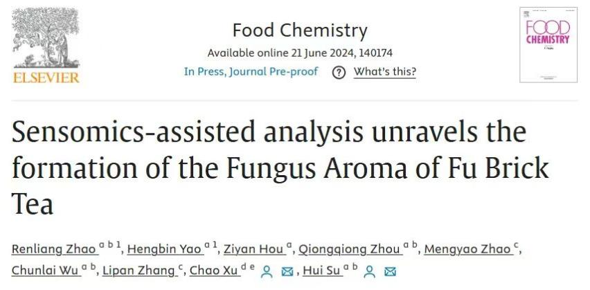 茶学团队在期刊Food Chemistry 杂志上在线发表了题为Sensomics-assisted analysis unravels the formation of the Fungus Aroma of Fu Brick Tea的研究论文,揭示了茯砖茶“菌花香”香气的关键挥发性化合物及其互作机制。