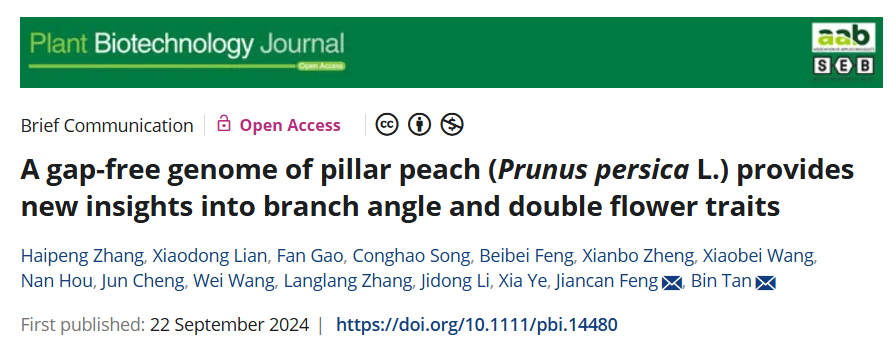 冯建灿/谭彬教授团队题为“A gap-free genome of pillar peach (