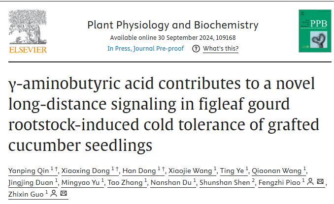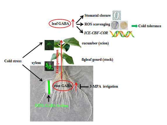 γ-aminobutyric acid contributes to a novel long-distance signaling in figleaf gourd rootstock-induced cold tolerance of grafted cucumber seedlings”在