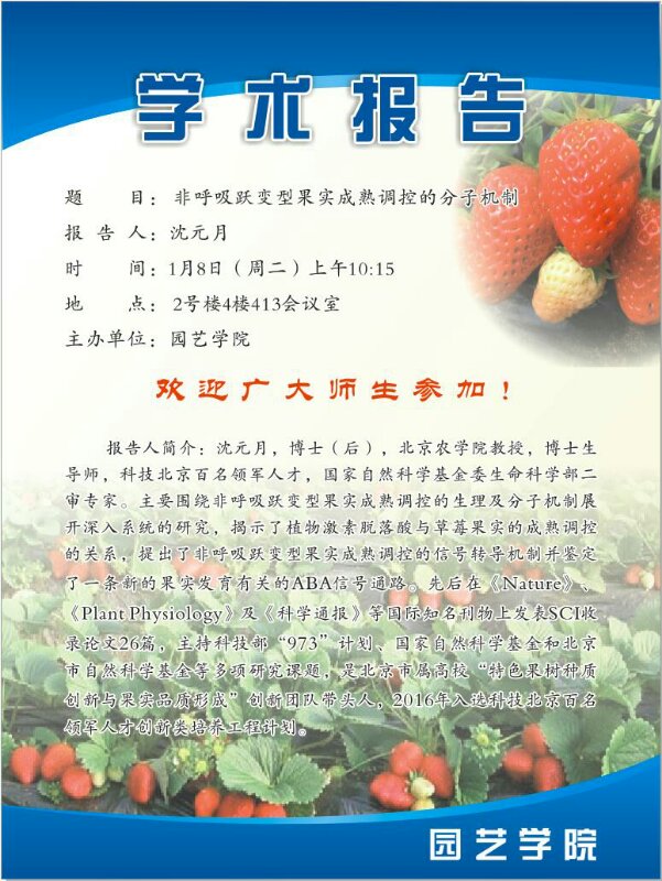 学术报告:非呼吸跃变型果实成熟调控的分子机制