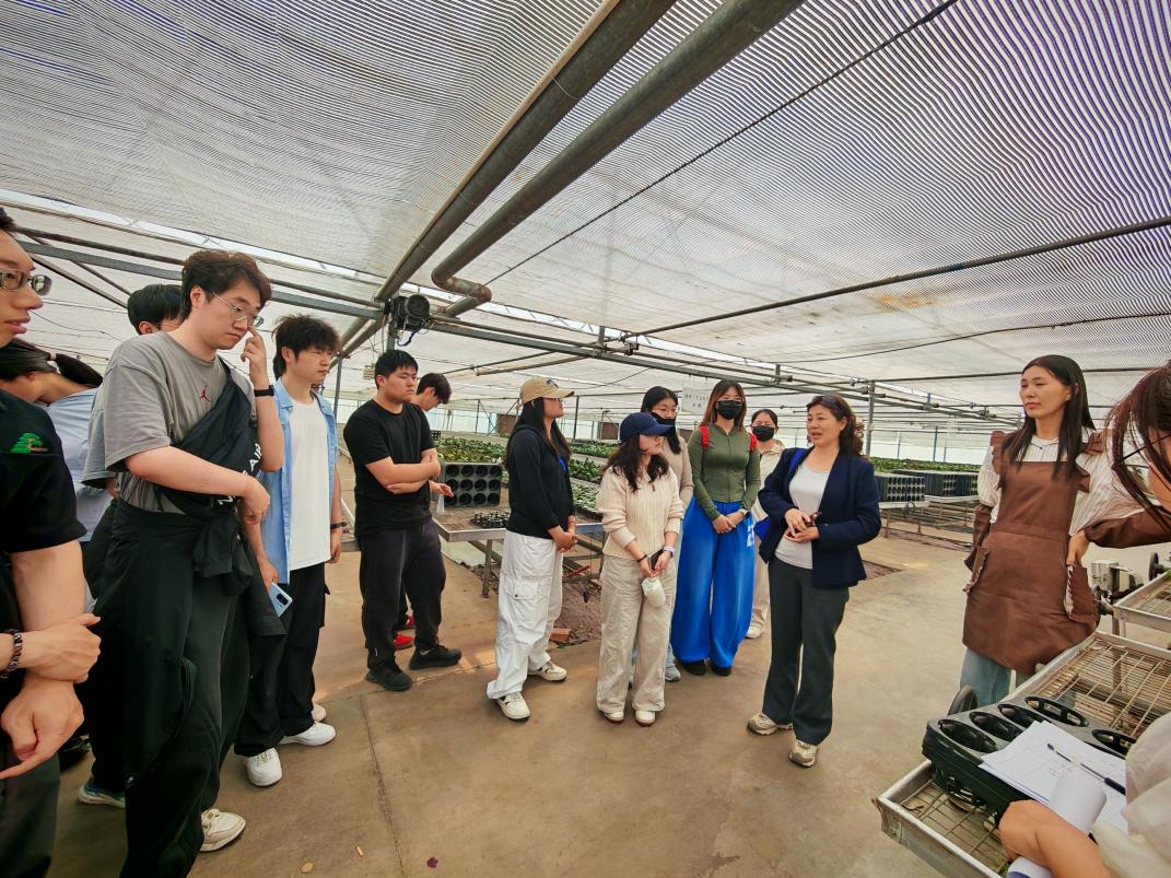 在蝴蝶兰展区,基地工作人员带领同学们系统学习了蝴蝶兰组培快繁的全流程,同学们结合课堂所学,进一步梳理了蝴蝶兰杂交、组培等育种方法,了解了其种子细小如粉尘的特性及市场价格差异,对蝴蝶兰产业形成了全面认知。在红掌展区,同学们深入了解了红掌的品种特色与适配场景。基地展示的多色系红掌品种,也让同学们直观感受到其丰富的遗传多样性与广阔的市场潜力。
